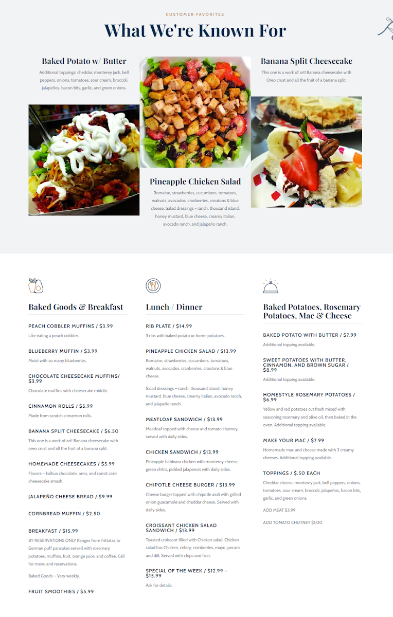 The Potato Shack Menu